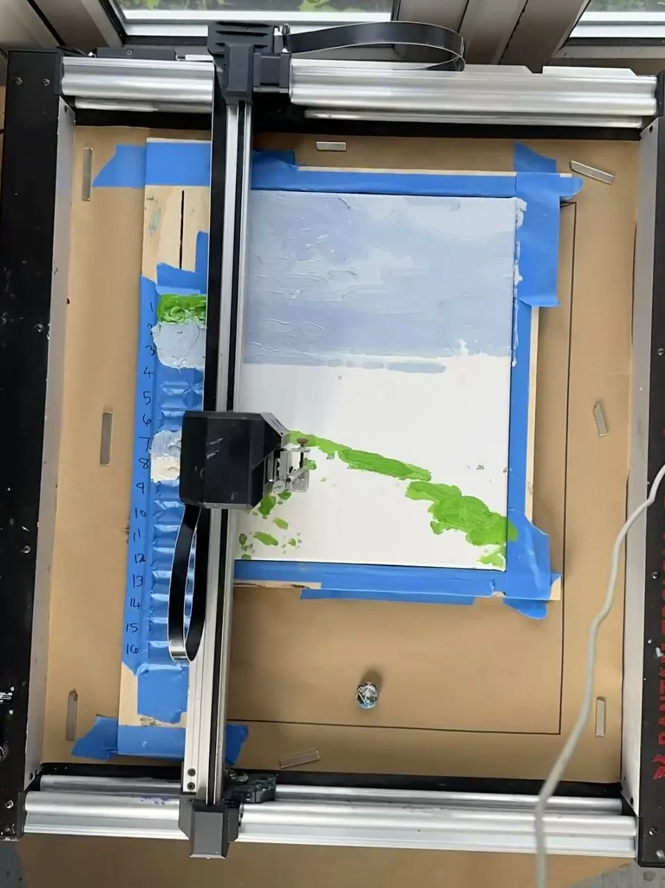 Andee Collard (b. 1979, Redhill, UK) works between machine and image, using CNC, plotting technologies, and AI to create paintings that question how images are made and who—or what—makes them.