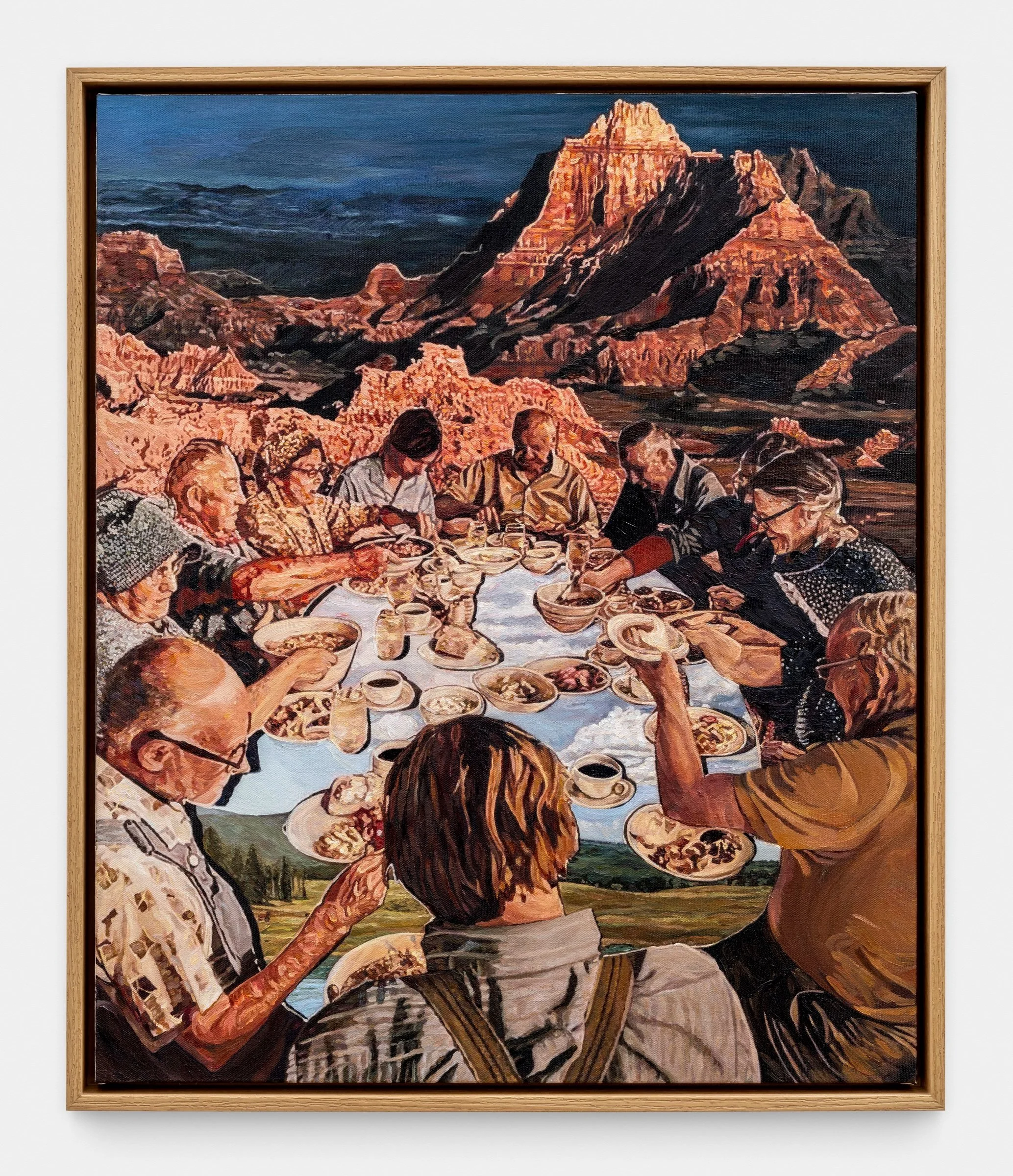 Lowell Ryan Projects is pleased to present Unspoken Pleasures of the New Frontier, the first solo exhibition by New Jersey-based, self-taught artist Marisa Regante (1980). In this suite of nine small-scale intricate oil paintings, Regante interlaces surrealism, personal symbolism, and retro Americana into rich, cinematic tableaux. Sourcing imagery from vintage magazines such as National Geographic, Playboy, and Arizona Highways, she reconfigures fragments of the past into dreamlike scenes that examine rituals of domesticity, desire, and escapism. Equal parts reverie and social mirror, these works traverse a world both intimate and uncanny.